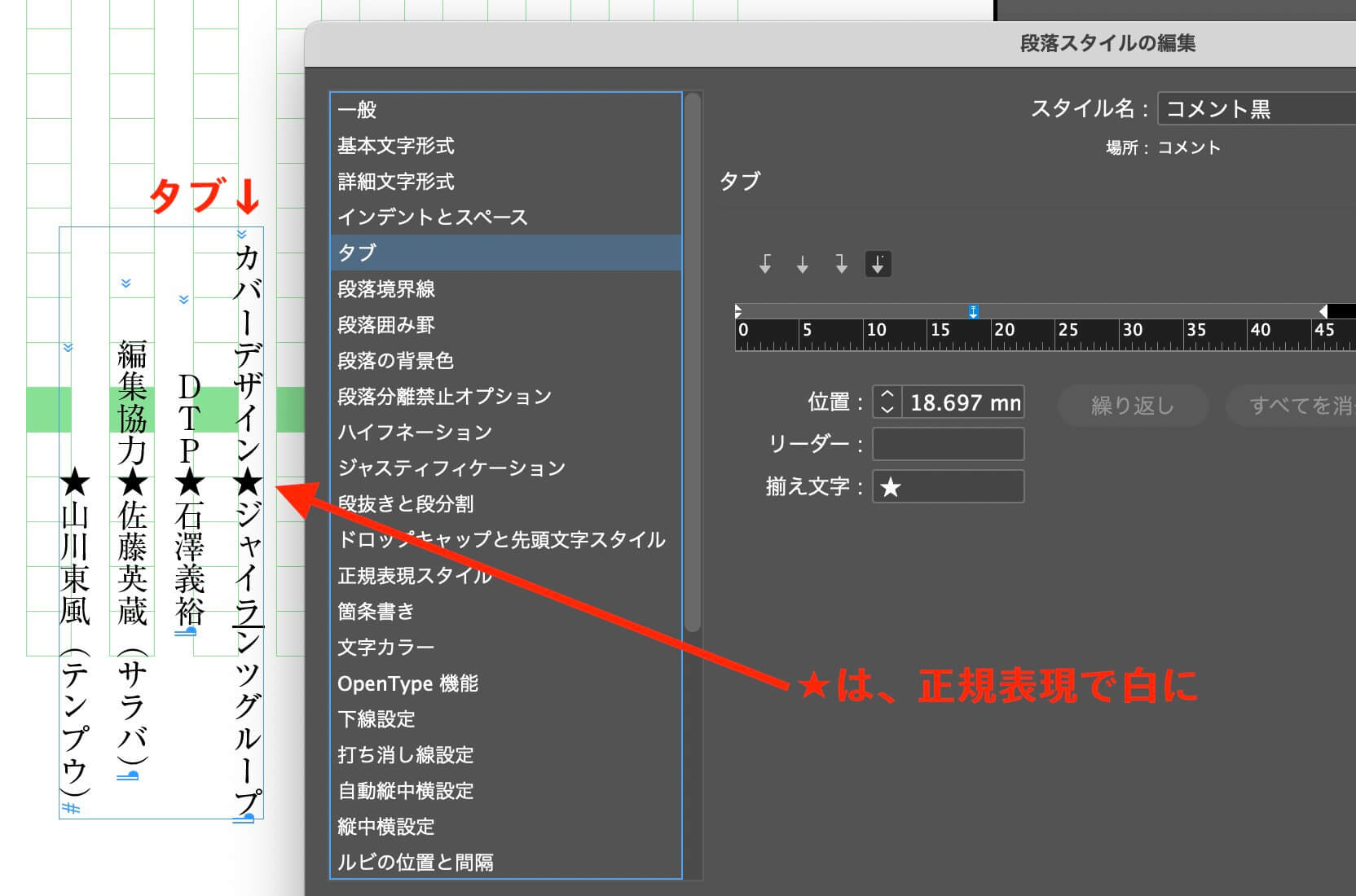 〈InDesign〉タブの揃え文字